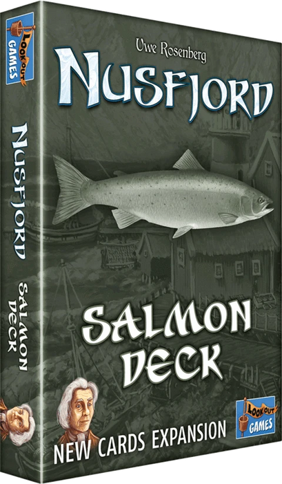 The Salmon Deck is the second expansion for Nusfjord . It introduces 44 new A-, B- and C-Buildings for advanced players, requiring a much deeper understanding of its mechanics than the base game decks. Additionally, the expansion contains metal coins, which replace the base games cardboard coins for a better feel and look of the base game as well as a new elder. Contents: 45 Cards 25 Metal Coins 1 Appendix